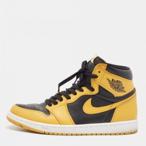 Air Jordans Black/Yellow Leather Jordan 1 Retro Dunk Hi Sp Maize Sneakers Size 44.5