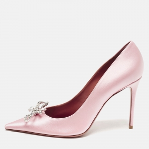 Amina Muaddi Pink Leather Sharon Pumps Size 37