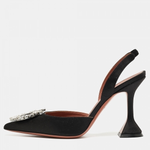Amina Muaddi Aqua Green Satin Camelia Slingback Pumps Size 41