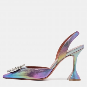 Amina Muaddi Multicolor Metallic Leather Begum Slingback Pumps Size 40