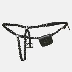 حافظة حزام إيربودز برو شانيل جلد محبب مبطن أسود