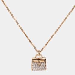 قلادة هيرمس كيلي ذهب وردي عيار 18 ألماس صغيرة سلسلة