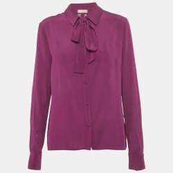قميص إيلي صعب أكمام طويلة تفاصيل مكشكشة حرير كريب زرقاء XS