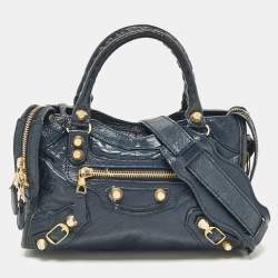 حقيبة يد توتس بالنسياغا سيتي جلد نقشة التمساح رصاصي حافة ميتاليك صغيرة