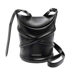 حقيبة باكيت أليكساندر ماكوين سوفت كيرف جلد أسود برباط