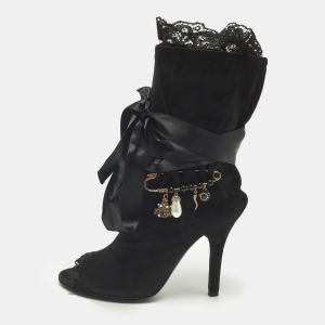 Pre Owned Dolce & Gabbana Size 39.5 Brown/Black Patent and Leather Peep Toe Platform Ankle Strap Pumps