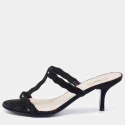 Prada Black Leather Square Toe Slingback Sandals Size 37.5