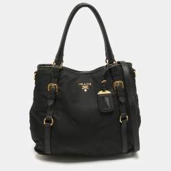 Prada Black Nylon and Leather Logo Shoulder Bag