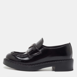Prada Black/Blue Leather Bow Logo Embellished Loafers Size 38