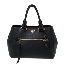 Prada Black Leather Medium Tote Bag