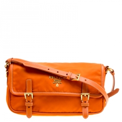Prada Orange Saffiano Lux Leather Small Promenade Crossbody Bag