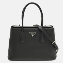 Prada Navy Blue Saffiano Lux Leather Small Middle Zip Tote