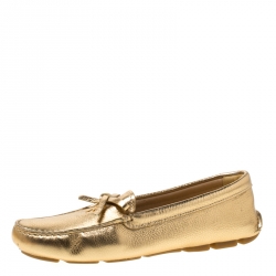 Prada Metallic Gold Leather Pointed Toe Pumps Size 37.5