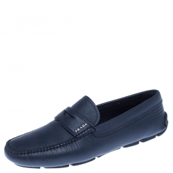 Prada Dark Blue Pebbled Leather Loafers Size 42