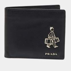 Prada Black Saffiano Metal Leather Bellhop Bifold Wallet