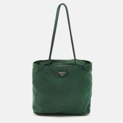 Prada Green Nylon Logo Triangle Zip Tote