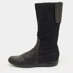 Prada Black Suede Grosgrain Peep Toe Mules Size 36