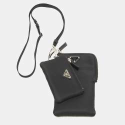 Prada Black Saffiano Leather and Nylon Logo Flap Shoulder Bag