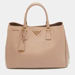 Prada Beige Vitello Daino Leather Pushlock Flap Hobo