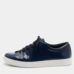 Prada Black/Navy Blue Leather and Nylon Low Top Sneakers Size 44.5