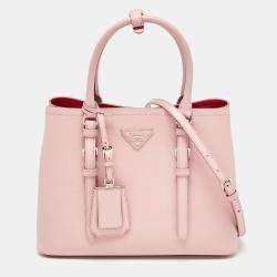 Prada Rose Poudre Saffiano Lux Leather Medium Double Zip Tote