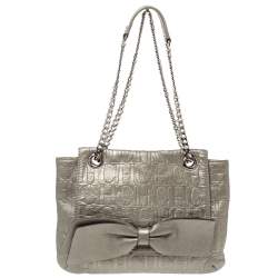 Carolina Herrera Grey Monogram Embossed Leather Audrey Shoulder Bag