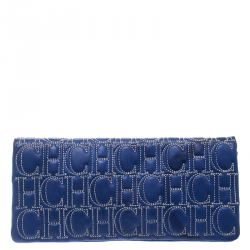 Carolina Herrera Blue Monogram Leather Jerry Clutch