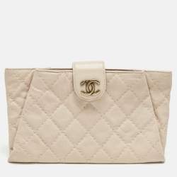 Chanel Light Pink Quilted Aged Leather Coco Pleats Clutch
