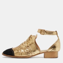 Chanel Gold/Black Leather and Suede CC Ankle Strap Oxford Sandals Size 42