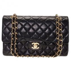 Chanel Black Lambskin Double Flap Medium Shoulder Bag