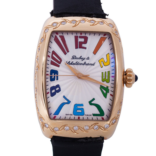 Dubey & Schaldenbrand White 18K Rose Gold Lady Rainbow Women's Wristwatch 26MM