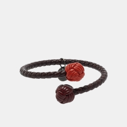 Bottega Veneta Interciatto Pulsera de Cuero Leather Gunmetal Tone Bracelet