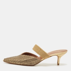 Malone Souliers Beige/Gold Straw and Woven Fabric Maisie Mules Size 41