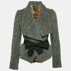 Dolce & Gabbana Grey Wool Open Drape Collar Jacket S