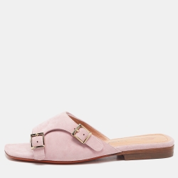 Santoni Pink Suede Double Buckle Flat Sandals Size 35
