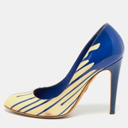 Sergio Rossi Cream/Blue Patent Leather Round Toe Pumps Size 38