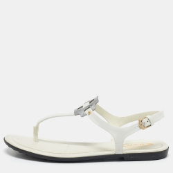 Tod's White Leather Thong Slingback Flat Sandals Size 35
