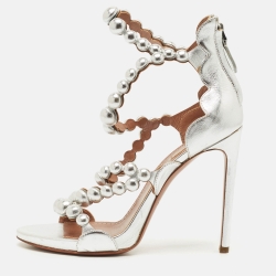 Alaia Silver Leather Bombe Strappy Sandals Size 39