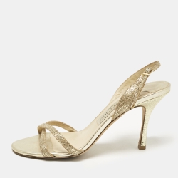 Jimmy Choo Gold Leather and Glitter India Slingback Sandals Size 37.5