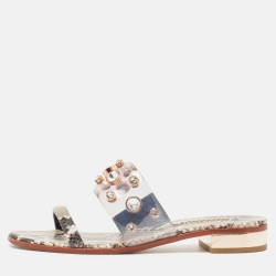 Sophia Webster Beige Snakeskin Embossed And PVC Dina Slide Sandals Size 39