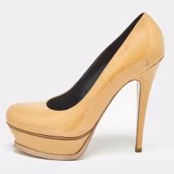 Saint Laurent Beige Patent Leather Tribtoo Platform Pumps Size 38