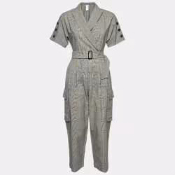 Max Mara Grey Check Virgin Wool Belted Jumpsuit S