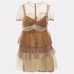 RED Valentino Brown Point d'esprit Tulle Tiered Mini Dress M