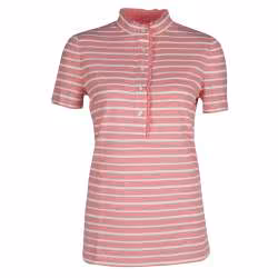 Tory Burch Pink and White Striped Knit Ruffle Detail T-Shirt S