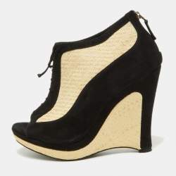 Fendi Brown Patent and Elastic Wedge Sandals Size 39.5