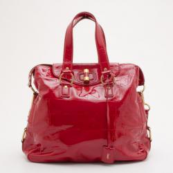 Saint Laurent Paris Red Patent Croc Embossed Tote