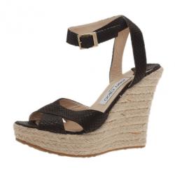 Jimmy Choo Dark Brown Snake Embossed Leather Phoenix Espadrilles Wedges Size 38