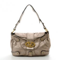 Chanel Metallic Silver Leather Chain Trim Luxe Ligne Bowler Bag