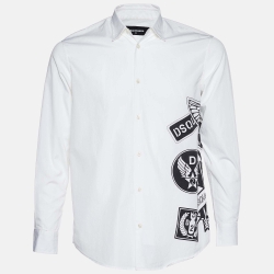 Dsquared2 White Cotton Logo Print Button Front Shirt XS