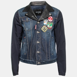 Dsquared2 Navy Blue Denim & Leather Collar Detail Jacket L